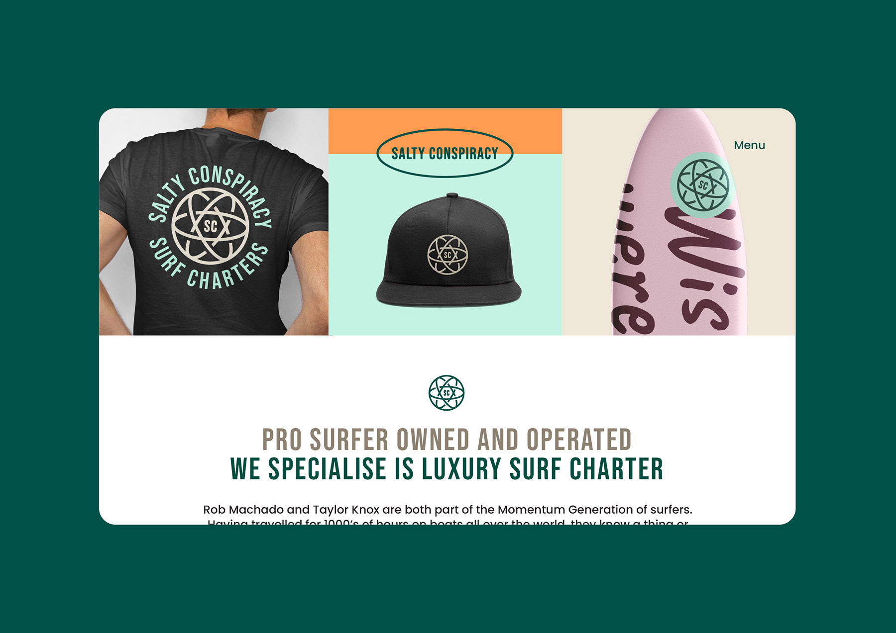 Brand identity for the only pro surfer owned and run Surf Charter. Salty Conspiracy provides luxury surf adventures to the best waves in Indonesia and the Maldives.